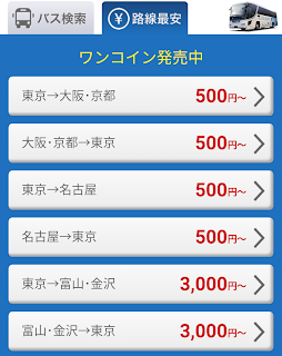 往復1,000円を狙っても良いですが、片道ワンコイン高速バス、片道飛行機(LCC)とかもありかなと思います。(大阪の場合)