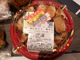 半額シールでお弁当が199円でした。(菓子パンとかも50円ぐらい)